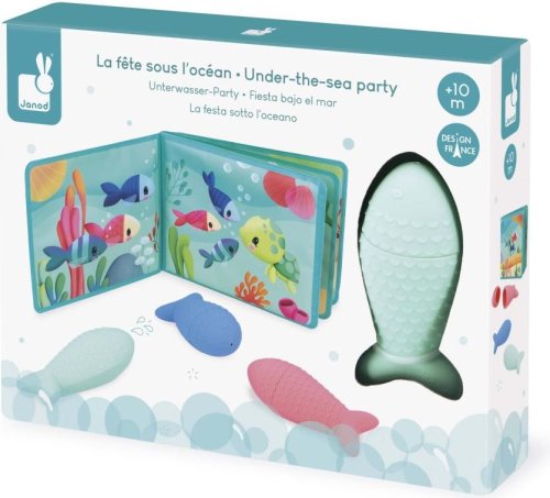 Kúpacia sada poteší deti od 10 mesiacov veku a prinesie veľa zábavy do každodennej hygieny. Obsahuje vodeodolnú knižku „Oceánska párty“ a 3 rozprašovacie hračky v tvare rybičiek, ktoré podnecujú detskú fantáziu aj rozvoj jemnej motoriky. Príbeh sleduje skupinku morských kamarátov, ktorí sa vydávajú na párty na dno oceánu. Deti na stránkach objavujú korytnačky, klauny, krevety, hviezdice a ďalšie morské tvory - a môžu príbeh doslova oživiť pomocou rybičiek, ktoré striekajú vodu po stlačení bruška. Praktické prevedenie: Rozprašovače je možné rozobrať na dve časti, čo uľahčuje čistenie a schnutie medzi kúpaním.