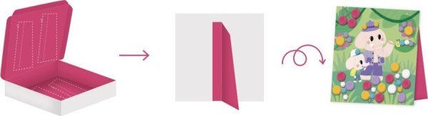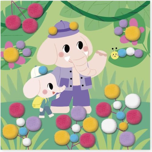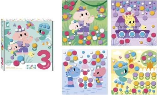 táto sada obsahuje 4 obrázky, ktoré možno ozdobiť 150 brmbolcami v 2 veľkostiach a 5 rôznych farbách súčastí sú 4 stojančeky na obrázky, ktoré možno vyrobiť pomocou krabičky brmbolca správnej farby a veľkosti jednoducho nalepte na miesto podľa návodu a farebných obrysov tvarov na obrázkoch dokončenia každého obrázku trvá približne 20 minút tento kreatívny box je súčasťou radu My Arts +amp; Crafts, ktorá deťom ponúka prvé kreatívne aktivity so zvieratkami