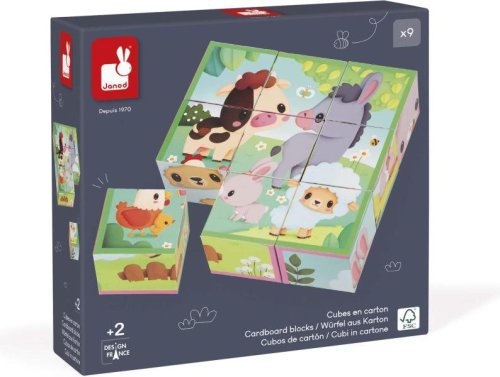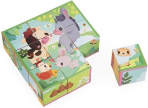 Drevené kocky s obrázkami zvieratiek je zábavné skladanie, počas ktorého vytvoríte 6 obrázkov z 9 kociek.