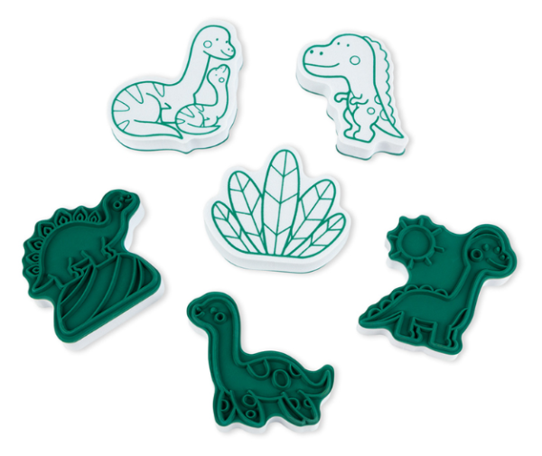 Veselé pečiatky v tvaroch dinosaurov doplnené o zelené vzory aj pre tie najmenšie deti. Tieto pečiatky pre kreatívne vyžitie prinesie deťom nielen zábavu, ale zdokonalí aj zručnosť a tvorivosť. Balenie obsahuje: