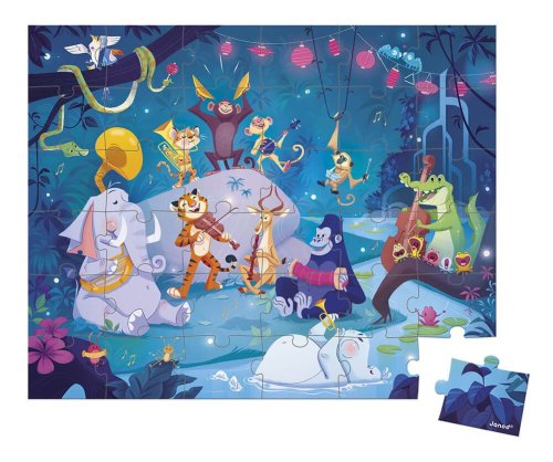 Puzzle JANOD s obrázkom zvieratiek, ktoré si užívajú zábavu na letnom festivale. Puzzle je balené v originálnom a praktickom kufríku vhodnom na doma aj na cesty. Súčasťou balenia je plagátová predloha. Rozmer zloženého puzzle cca 50 x 40 cm