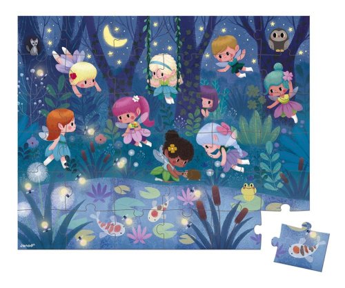 Puzzle JANOD s motívom nočného lesa a malých kúzelných víl. Puzzle je balené v originálnom a praktickom kufríku vhodnom na doma aj na cesty. Obsahuje predlohu skladaného motívu v skutočnej veľkosti. Rozmer zloženého puzzle cca 50 x 40 cm