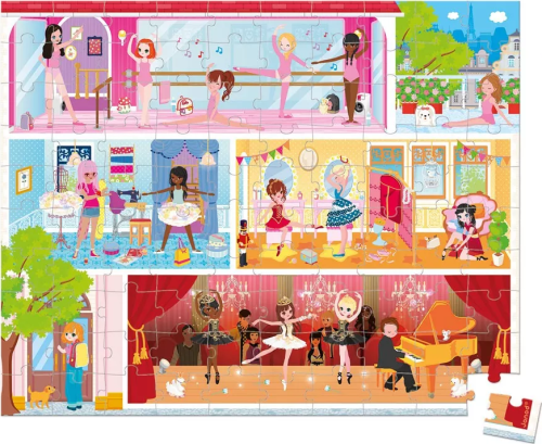 Nádherné obrázkové puzzle pre dievčatá s motívom baletiek v baletnej škole. Puzzle sú balené v originálnom a praktickom kufríku so zatváraním, takže sú vždy upratané a zároveň sú pekným doplnkom do detských izbičiek. Rozmer zloženého puzzle cca 50 x 40 cm