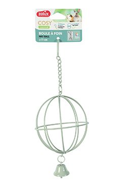 Závesné jasličky v tvare gule s priemerom 11cm, zaistia vždy čisté a suché seno.