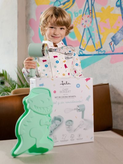 Trávia vaše deti radi čas v kuchyni a chcú byť samostatné? S touto sadou 3v1 môžu. Sada nástrojov na pečenie je to pravé pre malých kuchárov. Súčasťou je ručný šľahač, chopper (sekáčik) a silikónová forma na pečenie. Každý prvok tejto sady bol navrhnutý s dôrazom na praktickosť a jednoduchú ovládateľnosť. Šľahač aj chopper sú ľahké, takže ich deti bez problému unesú a udržia. AKU ručný šľahač s 2 nástavcami má 5 rýchlostí. Chopper (sekáčik) s objemom 300 ml. Silikónová forma v tvare dinosaura je nepriľnavá a flexibilná. Forma odoláva extrémnym teplotám: do 230 ° C a -40 ° C, je teda vhodná do rúry na pečenie a tiež napr. do mrazničky. Rozmery formy sú 27x17x6 cm, kapacita 950 ml. BPA. Jednoduché nabíjanie pomocou USB kábla. USB kábel je súčasťou balenia. Tento spotrebič môžu používať deti, pokiaľ sú pod dozorom dospelej osoby alebo boli poučené o používaní spotrebiča bezpečným spôsobom a rozumejú prípadným nebezpečenstvám . Hlavné vlastnosti: 3v1 v jednom uľahčuje prípravu rôznych pokrmov skvelý pomocník v kuchyni