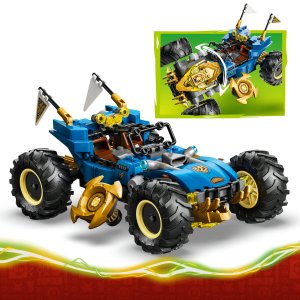 Dievčatá a chlapci od 8 rokov si užijú hodiny akčnej zábavy so stavebnicou LEGO® NINJAGO® Jay a jeho transformačné auto (71856). S touto nindžovskou hračkou s autom 2 v 1 si užijete hernú zábavu a potom ju môžete vystaviť v 2 možných podobách: v základnom režime alebo otočením prednej časti do dračieho režimu, ktorý odhalí zlaté pazúry, dračiu hlavu a rotujúce šurikeny. Dobrodružná hračka pre deti obsahuje pružinový vystreľovač s 2 šípkami, ktoré je možné odpojiť a umiestniť na stranu pokrytú rastlinami, pre akčné hranie na súboje. Stavebnica tiež obsahuje 5 minifigúrok LEGO NINJAGO: Jaya, Nyu a Kaie v dračej podobe, a zbabelcami v podobe zlého zemského monštrá a vodkyne lojalistov pre súboje dobra proti zlu. Rad stavebníc a hračiek LEGO NINJAGO obsahuje prepracované robotické obleky, draky a chrámy, s ktorými sa fanúšikovia vydajú na úžasné akčné dobrodružstvá s nindžmi. Aplikácia LEGO Builder dodáva deťom pri stavaní istotu - môžu približovať a otáčať modely v 3D a sledovať postup pomocou zrozumiteľného digitálneho návodu. Stavebnica obsahuje 387 dielikov.