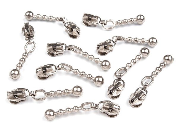 Kovový ozdobný jazdec má tvar tyčinky, ktorou zakončuje gulička. Je s aretáciou, čo znamená, že zips zostáva roztvorený iba toľko, koľko si prajete. Jazdec je vhodný na metráž, ktorú u nás nájdete pod kódom 050716, [750678, 900594, 560600.]