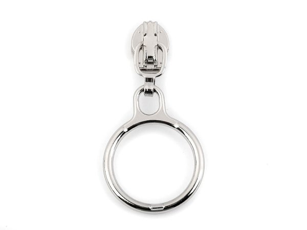 Kovový jazdec s tiahlom v podobe krúžku je určený k špirálovým zipsom o šírke 3 mm v metráži, ktoré u nás nájdete pod kódom 750678, 050716, 060714. Priemer krúžku je 20 mm.