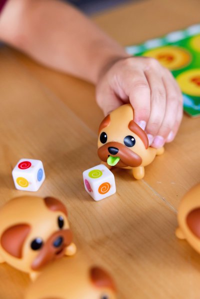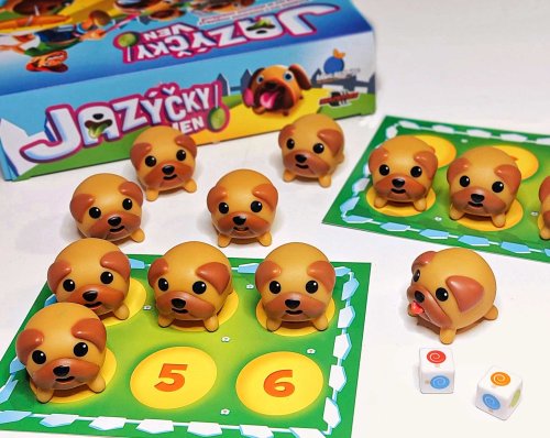 ACH NIE! MOPSLÍCI ZNEDLI VŠETKY LÍZIATKA! Našťastie teraz ich jazýčky majú farbu lízanky, ktoré zjedli! V každom kole sa snažíte spárovať farebné lízanky hodené na kockách s mopslíkmi, o ktorých si myslíte, že ich zlízali. Keď mopslíky jemne stlačíte, vystrčia jazýčky. A je jedno, akí sú roztomilí, toto im neprejde... Víťazom je hráč, ktorý ako prvý nájde zhodu medzi šiestimi lízankami a mopslíky. Jazýčky von! sú nástupcom staršej hry Tučniaky od rovnakého vydavateľa. Zvieratká sú iné, zábava sa nemení! Obsah balenia: 4 mopslí karty 12 mopslíkov 2 lízatkové kocky české a slovenské pravidlá