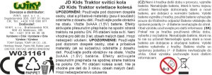 JD Kids Monster Treads. John Deere traktor so svietiacimi kolesami. Batéria 3xAAA (LR03) - súčasťou balenia, krytka pod vyklápacou kapotou traktora. Voľné kolesá. Pri otáčaní sa kolesá rozsvietia. ON/OFF spínač na spodnej strane.