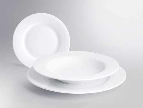 Táto 18-dielna porcelánová sada skladajúca sa z troch veľkostí tanierov zaujme svojim minimalistickým a elegantným prevedením. Sada tanierov PURE je skrátka dokonalou voľbou pre tých, ktorí ocenia jednoduchosť a čistotu vo svojej jedálni. Je to kombinácia estetiky a funkčnosti, ktorá vám umožní prezentovať pokrmy s eleganciou. Taniere sú odolnejšie vďaka zosilneným okrajom. Zloženie je 6x tanier plytký 27.7 cm, 6x tanier hlboký 23.7 cm, 6x tanier dezertný 20 cm. Extra biely odtieň. EAN 6927753125412