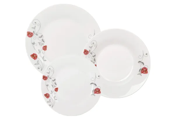 18dielny jedálenský set je elegantnou ponukou pre milovníkov štýlového podávania jedál. Súprava obsahuje plytké, hlboké a dezertné taniere, ktoré sa skvele hodia na rôzne pokrmy a dezerty. Vyrobené z vysoko kvalitného porcelánu, zaisťuje odolnosť a rafinovaný vzhľad. Jemné dekorácie dodávajú pokrmom triedu a vyzerajú skvele na každom stole. Univerzálny dizajn sa skvele hodí ako na každodenné stolovanie, tak na slávnostné stretnutie s rodinou a priateľmi. Sada je zabalená v originálnej krabičke, čo z nej robí skvelý tip na darček k rôznym príležitostiam. Vďaka starostlivému spracovaniu je odolný proti poškriabaniu a ľahko sa čistí. Skvele sa hodí do moderných interiérov aj na tradičný stolný aranžmán. Obsahuje tanier hlboký 23 cm 6x, tanier plytký 23 cm 6x, dezertný tanier 19 cm 6x. Vhodné umývačky riadu. EAN 5902738224350