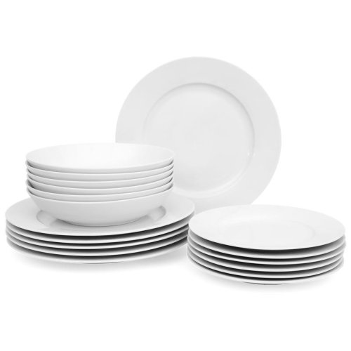 Tento riad je časovo nevšedný a trendy, skvele sa hodí do každej kuchyne. Jeho lesklý biely design je výborným doplnkom pre rôzne štýly servisu a prostredia. Tieto taniere môžu zdobiť váš stôl pri hostinách s priateľmi alebo slúžiť na pohodlné raňajky či obed. Určite si zaslúži miesto vo vašej kuchynskej skrini . 6 x raňajkové taniere s priemerom 20,5 cm6 x obedové taniere s priemerom 27 cm6 x hlboké taniere s priemerom 20,5 cm