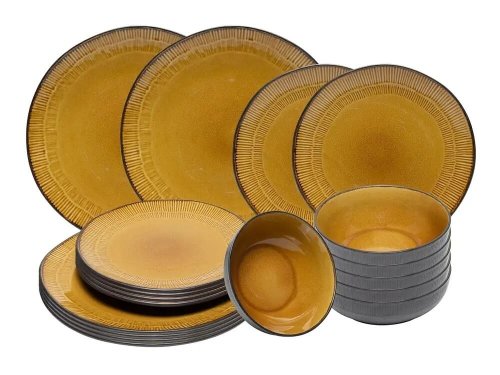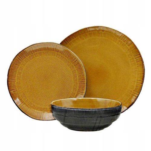 Materiál: keramika s glazúrou- Obsah sady: - 6 x dezertný tanier pr. 22 cm - 6 x polievková miska pr. 17 x 6 cm - 6 x plytký tanier pr. 27 cm- Vhodné do umývačky a mikrovlnnej rúry