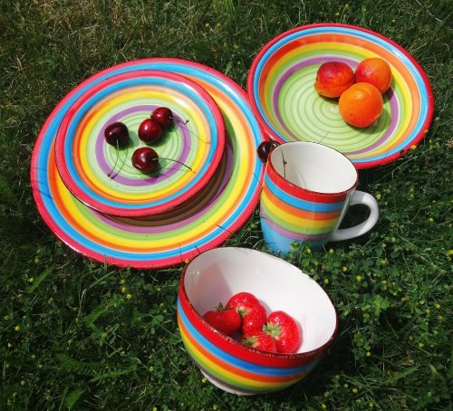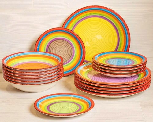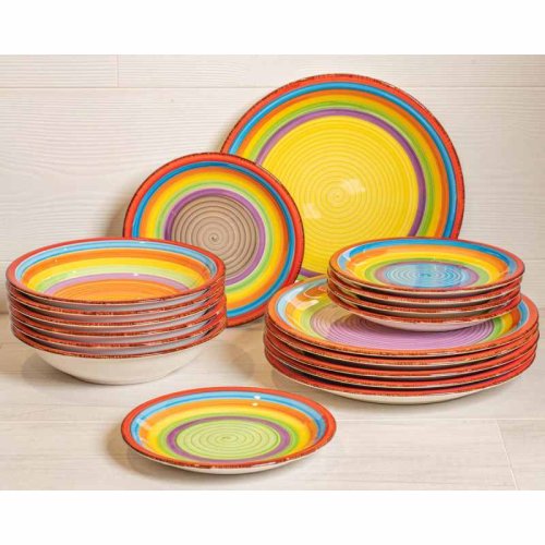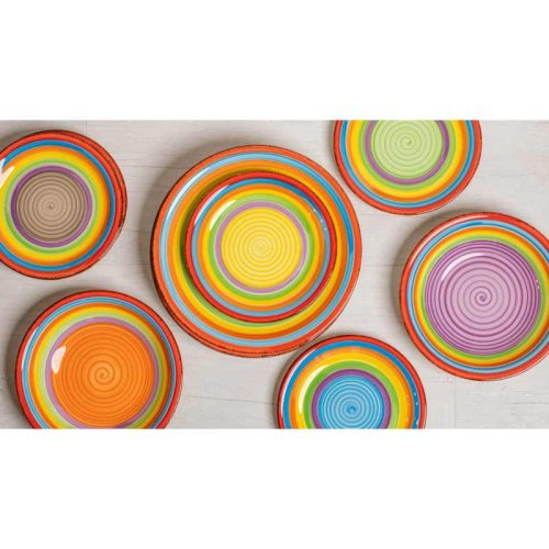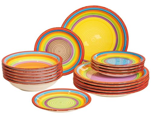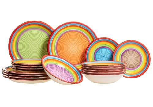 Vneste leto do svojho domova s touto 18dielnou sadou riadu model ´Ibiza´.Táto sada je vhodná pre 6 osôb.Sada sa skladá z:6x jedálenský tanier 27 cm6x hlboký tanier 20,5 cm6x raňajkový tanier 19,5 cm
