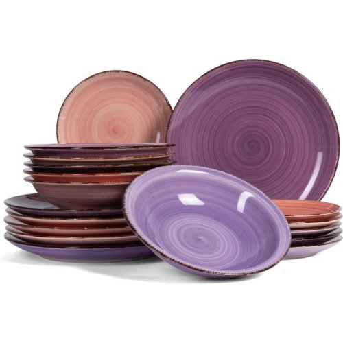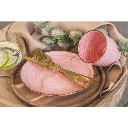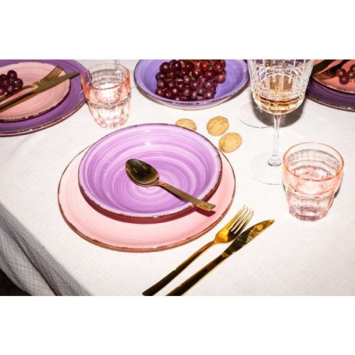 Ak máte radi tichý riad, ale nie niečo, čo rýchlo omrzí, potom by táto kolekcia od Cookinglife mohla byť niečo pre vás. Táto sada riadu sa dodáva v šiestich rôznych odtieňoch ružovej, ktoré boli starostlivo vybrané tak, aby stále zostala celistvá. Upozornenie: táto sada je dodávaná zmiešaná, takže nie je možné vybrať žiadnu farbu. Doplňte sadu napríklad o šálky, misky alebo hrnčeky na espresso z kolekcie Mykonos. Sada sa skladá z: 6 raňajkových tanierov 19 cm 6 hlbokých tanierov 20 cm 6 jedálenských tanierov 27 cm
