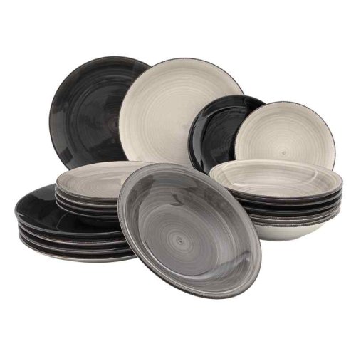 Chceli by ste niečo iné, ako je vaša štandardná sada bieleho riadu, ale nechce sa vám príliš vybaľovať? Potom si vyberte túto sadu riadu Vintage Loft. Krásne neutrálne farby sú rôzne, ale rozhodne príliš nevynikajú. Vezmite prosím na vedomie: tieto dosky sú dodávané zmiešané, takže nemožno vybrať žiadnu farbu. Sada sa skladá z: 6 raňajkových tanierov o 19,5 cm 6 hlbokých tanierov o 20,5 cm 6 jedálnych tanierov o 27 cm