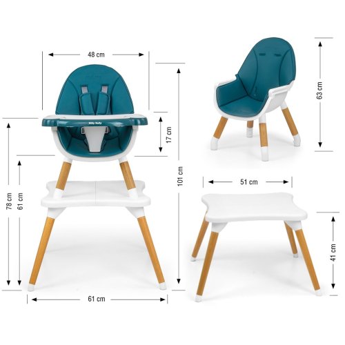 - Stolička je prispôsobená potrebám malých detí a spĺňa všetky normy požadované EÚ, oi európsku normu: EN 14988:2017+A1:2020