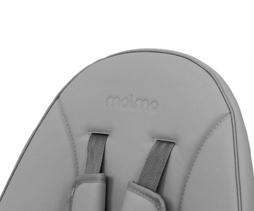 Päťbodové bezpečnostné pásy so širokými a mäkkými ramennými vypchávkami chránia dieťa pred odreninami. Čalúnenie stoličky Malmo z ekokože je odolné proti znečisteniu a ľahko sa čistí. Tácka má priehlbinu, ktorá zabraňuje skĺznutiu predmetov.