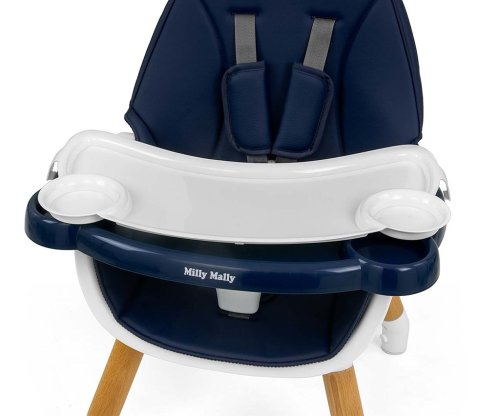 Päťbodové bezpečnostné pásy so širokými a mäkkými ramennými vypchávkami chránia dieťa pred odreninami. Čalúnenie stoličky Malmo z ekokože je odolné proti znečisteniu a ľahko sa čistí. Tácka má priehlbinu, ktorá zabraňuje skĺznutiu predmetov.