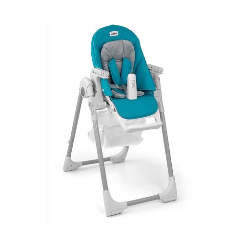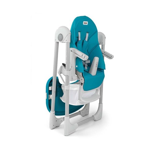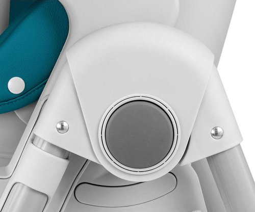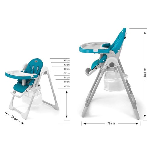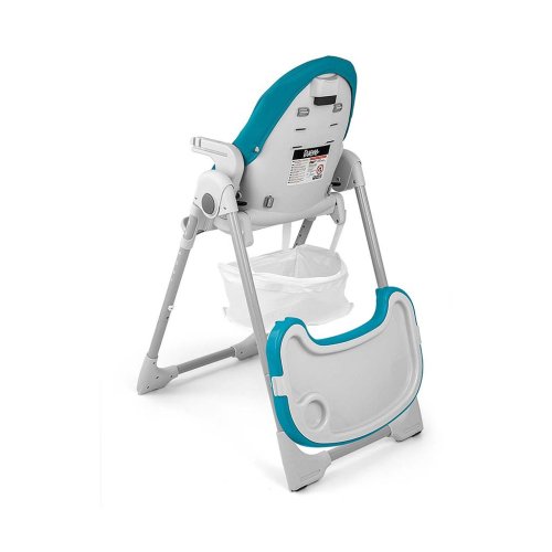 Čalúnenie stoličky je vyrobené z ekologickej kože a má navyše mäkkú vložku pre najmenších. Pre bezpečnosť dieťaťa je vybavená 5-timi bodovými nastaviteľnými pásmi a prídavnou zábranou proti pošmyknutiu. Na zadnej strane operadla je úchyt na zavesenie tácky. Operadlo aj podnožku je možné sklopiť do ľahu. Sedák je možné zdvihnúť alebo znížiť v 7 stupňoch a nohy majú zabudované gumové kolieska. Celú konštrukciu je možné ľahko a hladko zložiť.