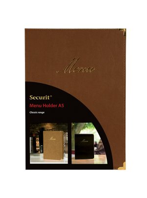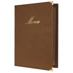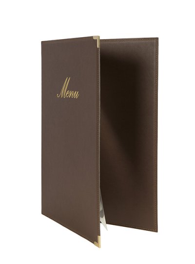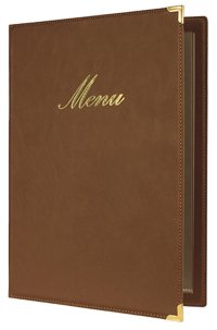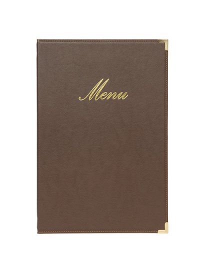 Jedálny lístok radu CLASSIC vo formáte A4 je vyrobený v hnedej farbe . Dosky v prevedení imitácie kože majú zlatý nápis menu na čelnej strane. Vnútorné upevnenie jednotlivých listov umožňuje dopĺňať a meniť existujúce priehľadné vložky. Každý "jedliak" obsahuje v základe jednu dvojitú vložku (4 strany ponuky).