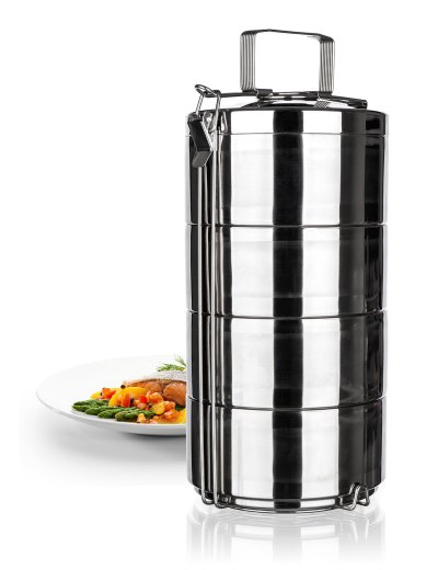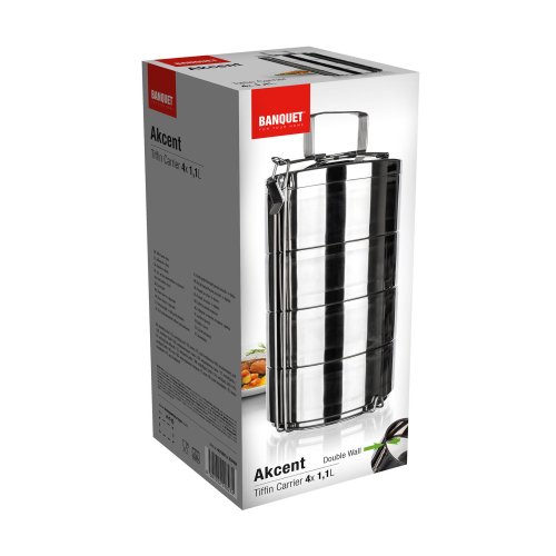 3dielny nerezový dvojstenný jedlonosič AKCENT je určený na prenášanie potravín a hotových pokrmov. Sada obsahuje 4 nerezové dvojstenné misky s priemerom 16 cm a výškou 7,5 cm. Vďaka dvojstennému prevedeniu je praktický na uchovanie teplého pokrmu počas prenášania.