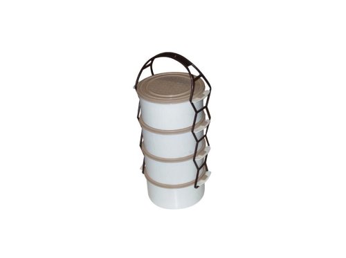 Box na ukladanie a prepravu jedla, zložený zo 4 dielov, ktoré sú navzájom prepojené držadlom.