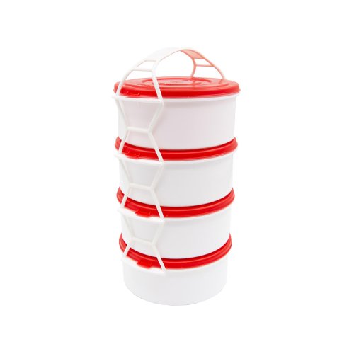 4 diely objem: 4 x 1,0 l materiál: plast biela miska, farebné viečko mix farieb: žltá, oranžová, ružová, červená, zelená