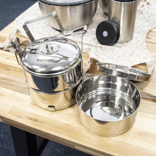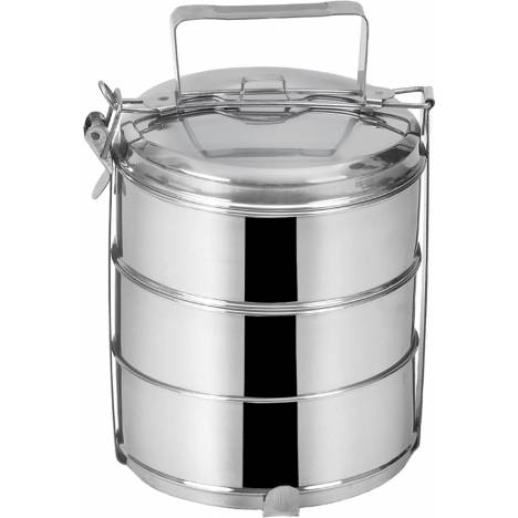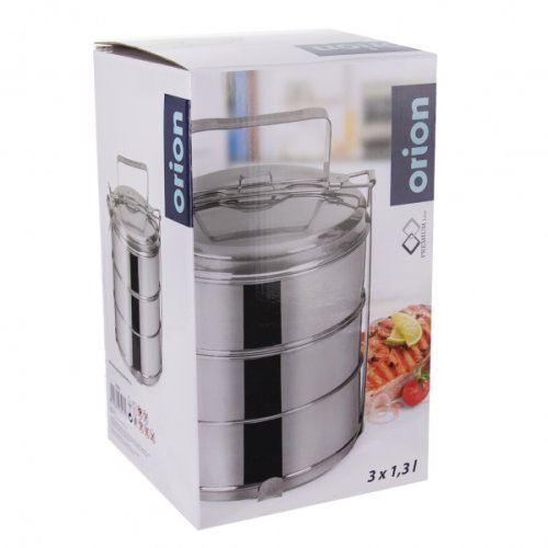 Jedlonosič 3poschodový celonerozový je určený na prenášanie potravín. Súčasťou je kovový stojan, opatrený prackou, ktorá zaistí jeho pevné uzavretie. Súčasťou je vrchná pokrievka a 2 ďalšie viečka na misky. Misky 3 x 1300 ml, priemer 16 cm, výška misky 6.5 cm, celková výška 27 cm. Nie je určený na ohrev jedla. Vhodný do umývačky riadu. EAN 8592381164171