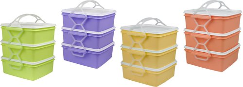 Plastový jedlonosič, štvoratý tvar, misky 3 x 1.2 litra. Možnosť dokúpenia náhraného ucha. Vhodné do umývačky riadu bez viečka. Farby podľa skladovej dostupnosti. Český výrobca. EAN 8594028843760