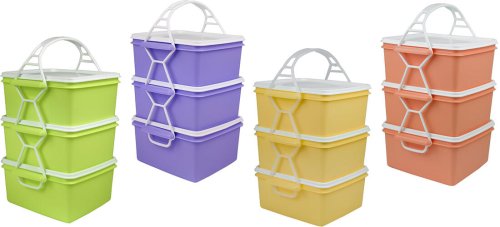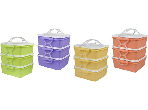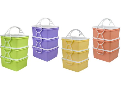 Plastový jedlonosič, štvoratý tvar, misky 3 x 1.2 litra. Možnosť dokúpenia náhraného ucha. Vhodné do umývačky riadu bez viečka. Farby podľa skladovej dostupnosti. Český výrobca. EAN 8594028843760