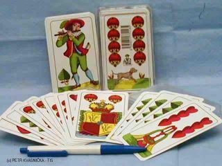 Klasická kartová hra. 32 listov, jednohlavé. V plastovej krabičke.