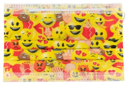 Jednorazová ochranná 3vrstvová rúška s motívom smajlíkov. S tvarovacím nosným drôtikom. Rúška s pružnými gumičkami pre ľahké uchytenie za uši je vyrobená z netkanej textílie s filtrom. Je priedušná a umožňuje pohodlné dýchanie. Rozmery: 14 x 9 cm. Balenie obsahuje 1x rúšku. Rúška je určená pre deti od 4 rokov.