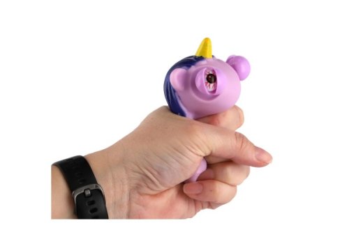 Jednorožec je z mäkkého silikónu a umožňuje tak ľahké stlačenie a stláčanie, čo poskytuje okamžitú úľavu od stresu a napätia. Pri stlačení "vyvalia" jednorožec oči. Rozmer jednorožca: 9 cm Vhodné od 3 rokov