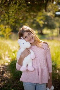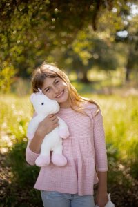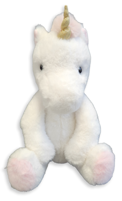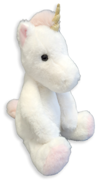 Kúzelný biely plyšový jednorožec o veľkosti 40 cm poteší všetky malé rojky a milovníkov rozprávkových bytostí. Je vyrobený z jemného a hebkého materiálu, ideálneho na maznanie. Jeho roztomilý vzhľad dopĺňa trblietavý roh, ktoré mu dodávajú magický šmrnc. Skvelý ako darček alebo dekorácia do detskej izby.