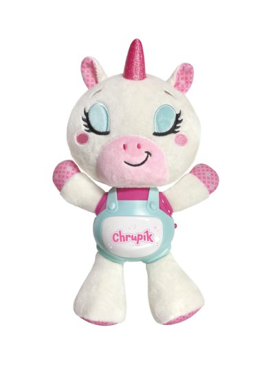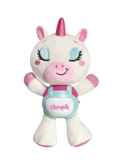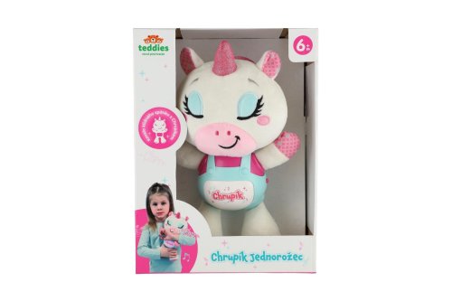 Jednorožec Chrupík – kúzelný zaspávačik so svetlom a zvukmi pre pokojné večery. Zaspávanie bude odteraz pre deti kúzelným zážitkom. Roztomilý Jednorožec Chrupík kombinuje mazlivého plyšového kamaráta s upokojujúcim svetlom a zvukmi. Je ideálnym spoločníkom pre večerné rituály a prvé samostatné zaspávanie. Jednorožec je vyrobený z hebkého plyšu a má plastový panel so svetelnými a zvukovými efektmi. Po stlačení tlačidla zahrá jemnú melódiu, ktorá upokojí dieťa a podfarbí príjemnú atmosféru tlmeným svetielkom. Vďaka napájaniu na batérie je možné hračku ľahko používať kdekoľvek – v postieľke, kočíku aj na cestách. Rozmery balenia 22 x 30 x 11 cm Vhodné pre deti od 6 mesiacov.
