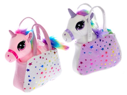 Jednorožec plyšový 20 cm s kabelkou 18x12 cm - mix farieb (ružová, fialová)