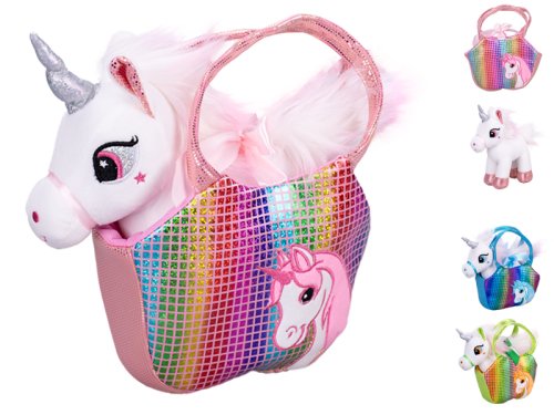 Jednorožec plyšový 22 cm s kabelkou 20x15 cm - mix farieb (modrá, ružová, zelená)