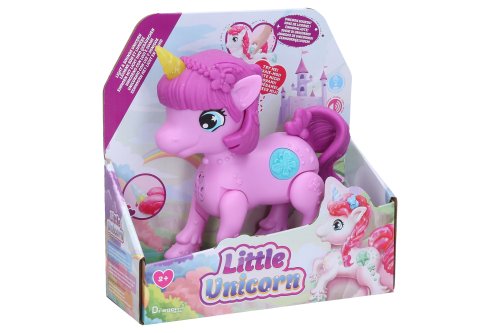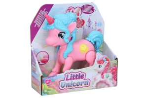 Jednorožec s efektmi. Veľkosť 18 cm. Svetelné a zvukové efekty. 3 varianty - biela, ružová, fialová.