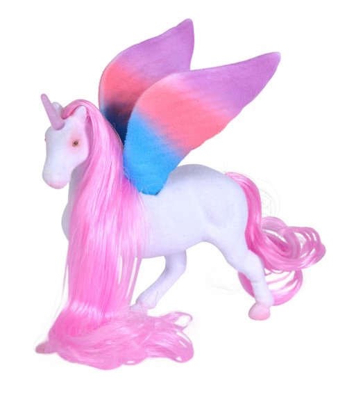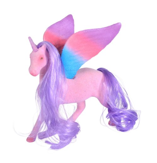 Figúrka jednorožca s krídlami a dlhou hrivou. 2 druhy. Veľkosť 11 cm.