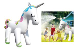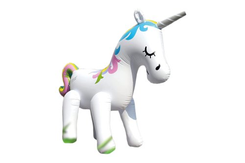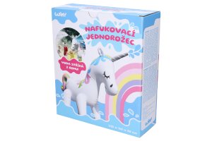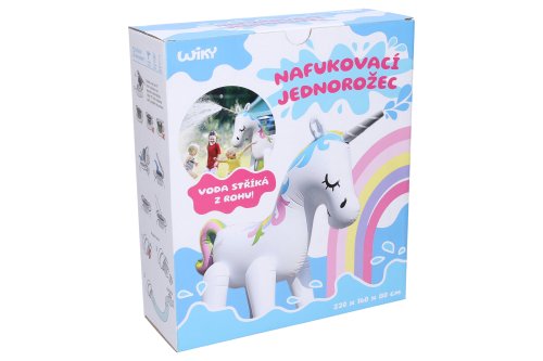 Jednorožec striekajúci. Rozmery nafúknutého jednorožca 220x160x80 cm.