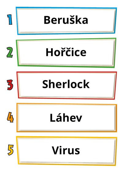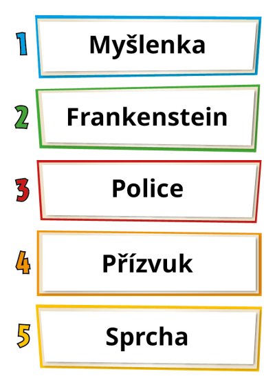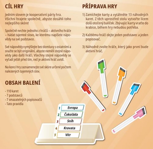 Obsah balenia: 110 kariet 7 podstavcov 7 zmazateľných popisovačov české a slovenské pravidlá (karty sú iba v českom jazyku)
