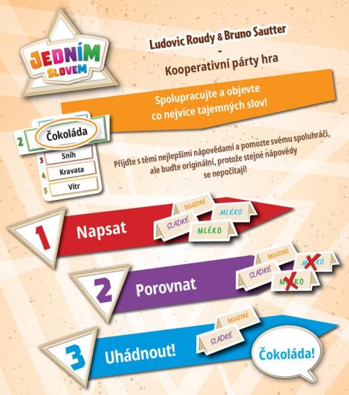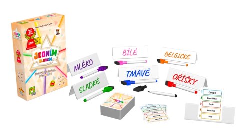 Jedným slovom je kooperatívna párty hra. Všetci hráte spoločne, aby ste dosiahli to najlepšie skóre! Spoločne nechajte jedného z hráčov – aktívneho hráča – hádať tajomné slovo, ku ktorému napíšete pomocníka na svoje podstavce.
