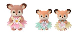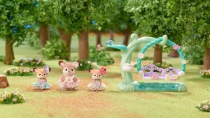 Poznaj rodinu Jelínkov Sylvanian Families. Táto sada obsahuje 3 rozkošné figúrky detí Jelínkov a kvetinovú hojdačku. Jelenie dievčatka Aster, Nova a Rose sa vydali von, aby sa pohojdali na kvetinovej hojdačke. Najstarší zo súrodencov Aster, má na sebe ružové šaty v tvare okvetných lístkov, zatiaľ čo batoľatá Nova a Rose majú mätovo zelené a žlté šaty s veľkou vyšívanou kvetinou na prednej strane. Deti rady sedia na kvetinovej hojdačke pri vode a jemne sa pohupujú sem a tam. Postavičky je možné obliekať a zdobiť rozkošnými štipcami. Hračky Sylvanian Families rozvíjajú predstavivosť a podporujú deti v hre na role. Hra s figúrkami rozvíja kreativitu a učí emóciám vytváraním a rozprávaním príbehov založených na každodenných zážitkoch a pozorovaní sveta. Vyznačujú sa najvyššou kvalitou a výnimočným dôrazom na detaily. Figúrky Sylvanian Families sú pokryté mäkkým semišom a majú pohyblivé končatiny a hlavu. Balené v krabičke. Rozmery balenia: 13 x 14,6 x 5,5 cm. Vek: 3+