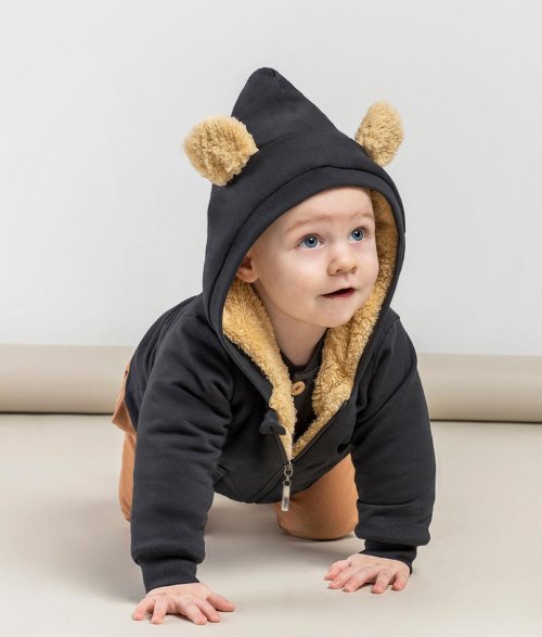 Krásna jesenná zateplená tepláková dojčenská mikinka Nicol Miki pre bábätká. Bundička s kapucňou s uškami, je vyrobená z kvalitného materiálu, ktorý zaručí vášmu bábätku teplo a pohodlie. Mikinka s kapucňou je podšitá hrejivým materiálom tzv. Wellsoftom. Zadná časť kabátika je štýlovo predĺžená. Kapucňa je podšitá z hrejivého materiálu tzv. Wellsoftu. Rukávy sú ukončené širším pružným lemom. Zapínanie po celej dĺžke na zips uľahčí obliekanie. Nápaditá, kvalitná a praktická. Presne taká je naša jesenná zateplená mikinka. Zloženie: bundička: vrchný materiál: 95% bavlna, 5% elastan, podšívka: 90% polyester-wellsoft, 10% bavlna.