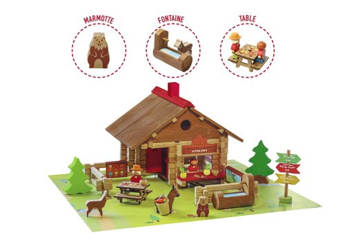 Čo môže byť krajšie ako prechádzky v horách? Precvičte svoju obratnosť a predstavivosť pri stavbe útočiska svišťov! Tento krásny domček z moreného dreva je opatrený aj piknikovým stolom, fontánou či roztomilými obyvateľmi (napr. oslom, kamzíkom a svišťom). Stavebnice Jeujura Constructions majú dlhú tradíciu a patria medzi klasické francúzske hračky. Ponúka séria tematicky venovanej chatám, domčekom a farmám, ale aj divokému západu a stredoveku. Dajú sa medzi sebou voľne kombinovať ak mnohým z nich je tiež ponúkané príslušenstvo, figúrky a vozidlá. Sú vyrábané vo Francúzsku, z masívneho bukového a borovicového dreva francúzskeho pôvodu. Dieliky sú ošetrené výhradne za použitia farieb a lakov na báze vody. Každá sada je balená v praktickom lepenkovom kufríku potlačenom rastlinnými atramentmi a súčasťou balenia je ľahko pochopiteľný návod. Hlavné vlastnosti: 150 dielikov z masívneho dreva a podložkapraktické balenievyrobené vo Francúzsku