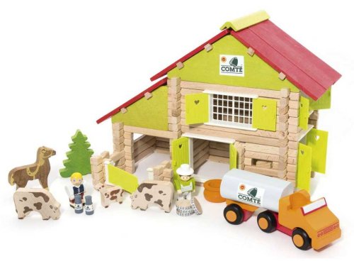 Drevená stavebnica, ktorá zoznámi malých staviteľov so životom na farme, stane sa ozdobou detskej izby. Stavebnice Jeujura Constructions majú dlhú tradíciu a patria medzi klasické francúzske hračky. Ponúka séria tematicky venovanej chatám, domčekom a farmám, ale aj divokému západu a stredoveku. Dajú sa medzi sebou voľne kombinovať ak mnohým z nich je tiež ponúkané príslušenstvo, figúrky a vozidlá. Sú vyrábané vo Francúzsku, z masívneho bukového a borovicového dreva francúzskeho pôvodu. Dieliky stavebníc sú ošetrené výhradne za použitia farieb a lakov na báze vody. Každá sada je balená v praktickom lepenkovom kufríku potlačenom rastlinnými atramentmi a súčasťou balenia je ľahko pochopiteľný návod. Hlavné vlastnosti: 180 dielikov z masívneho dreva a podložkapraktické balenievyrobené vo Francúzsku