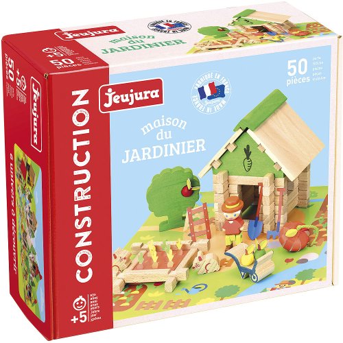 Drevená stavebnica záhradky rozvíja fantáziu a stane sa ozdobou detskej izby. Stavebnice Jeujura Constructions majú dlhú tradíciu a patria medzi klasické francúzske hračky. Ponúka séria tematicky venovanej chatám, domčekom a farmám, ale aj divokému západu a stredoveku. Dajú sa medzi sebou voľne kombinovať ak mnohým z nich je tiež ponúkané príslušenstvo, figúrky a vozidlá. Sú vyrábané vo Francúzsku, z masívneho bukového a borovicového dreva francúzskeho pôvodu. Dieliky sú ošetrené výhradne za použitia farieb a lakov na báze vody. Každá sada je balená v praktickom lepenkovom kufríku potlačenom rastlinnými atramentmi a súčasťou balenia je ľahko pochopiteľný návod. Hlavné vlastnosti: 50 dielikov z masívneho dreva a podložkapraktické balenievyrobené vo Francúzsku
