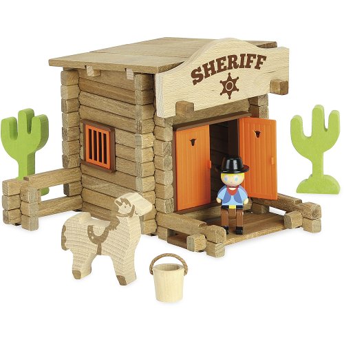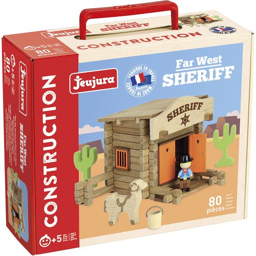 Drevená stavebnica s kulisami divokého západu sa stane ozdobou detskej izby. Stavebnice Jeujura Constructions majú dlhú tradíciu a patria medzi klasické francúzske hračky. Ponúka séria tematicky venovanej chatám, domčekom a farmám, ale aj divokému západu a stredoveku. Dajú sa medzi sebou voľne kombinovať ak mnohým z nich je tiež ponúkané príslušenstvo, figúrky a vozidlá. Sú vyrábané vo Francúzsku, z masívneho bukového a borovicového dreva francúzskeho pôvodu. Dieliky sú ošetrené výhradne za použitia farieb a lakov na báze vody. Každá sada je balená v praktickom lepenkovom kufríku potlačenom rastlinnými atramentmi a súčasťou balenia je ľahko pochopiteľný návod. Hlavné vlastnosti: 80 dielikov z masívneho dreva a podložkapraktické balenievyrobené vo Francúzsku